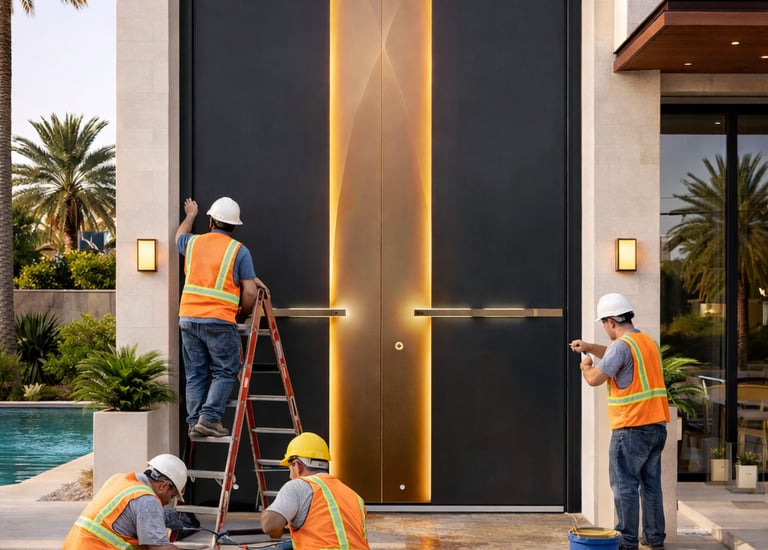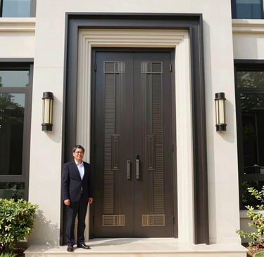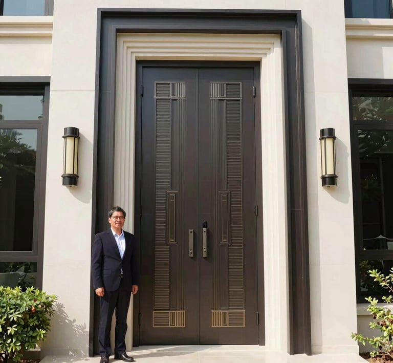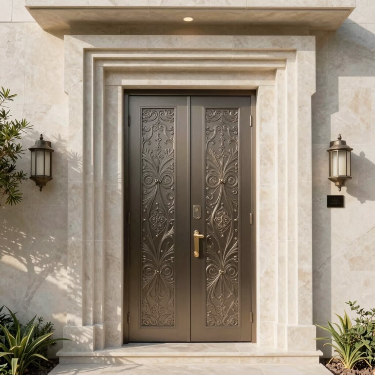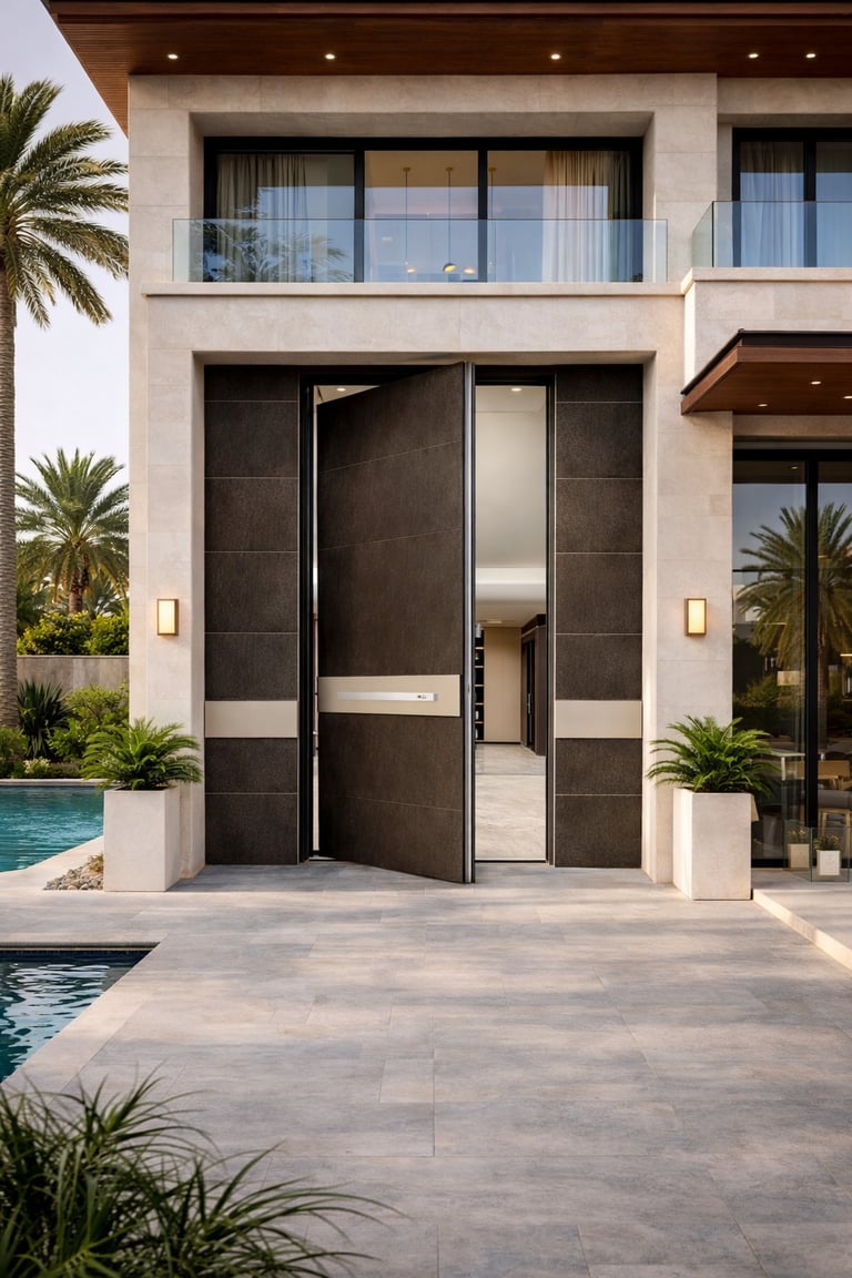 Premium hinges use precision engineering and high-load bearings to distribute the door’s weight so smoothly that even our massive luxury door glides open with a light, effortless touch.