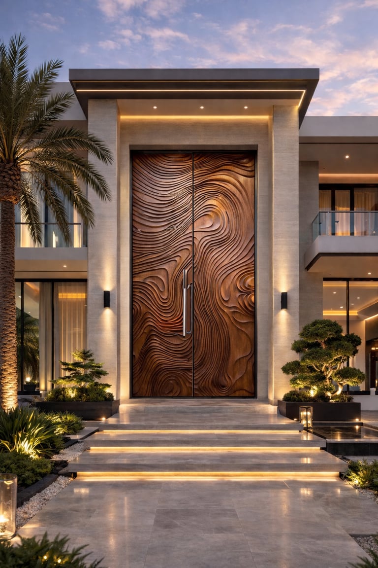 Our doors can be custom-made to suit the architecture of a home. With unique finishes, handles, glass panels, lighting etc.